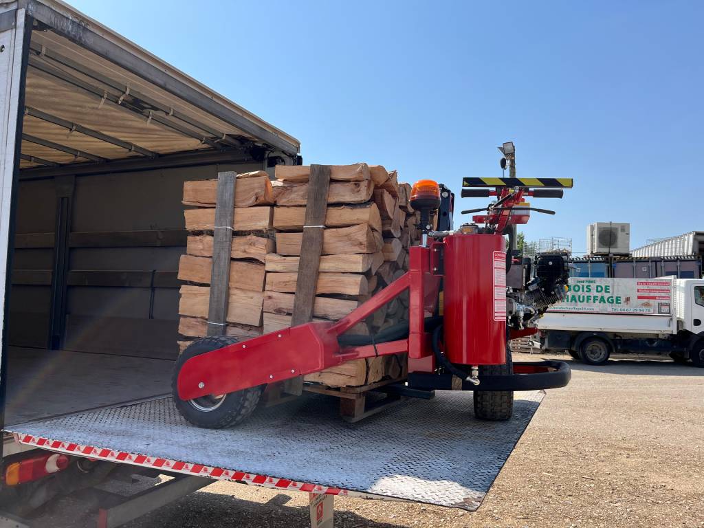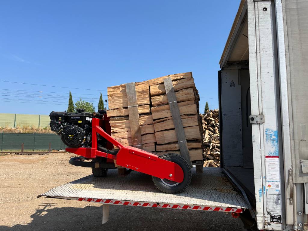 Nous vous simplifions la vie avec notre livraison de bois de chauffage équipée d’un transpalette tout-terrain.